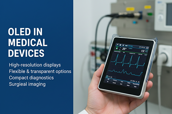 For portable medical equipment and diagnostic devices, OLED displays provide sharp text and graphics with very low power consumption, helping extend battery life while ensuring accurate information display.